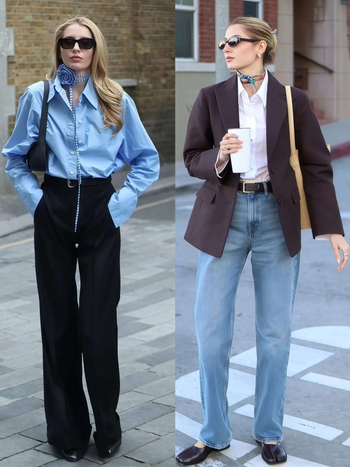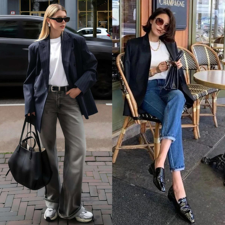 鞋子是这组搭配的作风开关,通常的西装和牛仔裤,配不同的鞋子,举座造型的作风完全不同,乐福鞋带来的是知性优雅的嗅觉,相宜通勤和隆重景色,清楚鞋带来的是空闲减龄的嗅觉,相宜平淡出街,短靴带来的是干练帅气的嗅觉,相宜思要造型更有气场的东谈主。